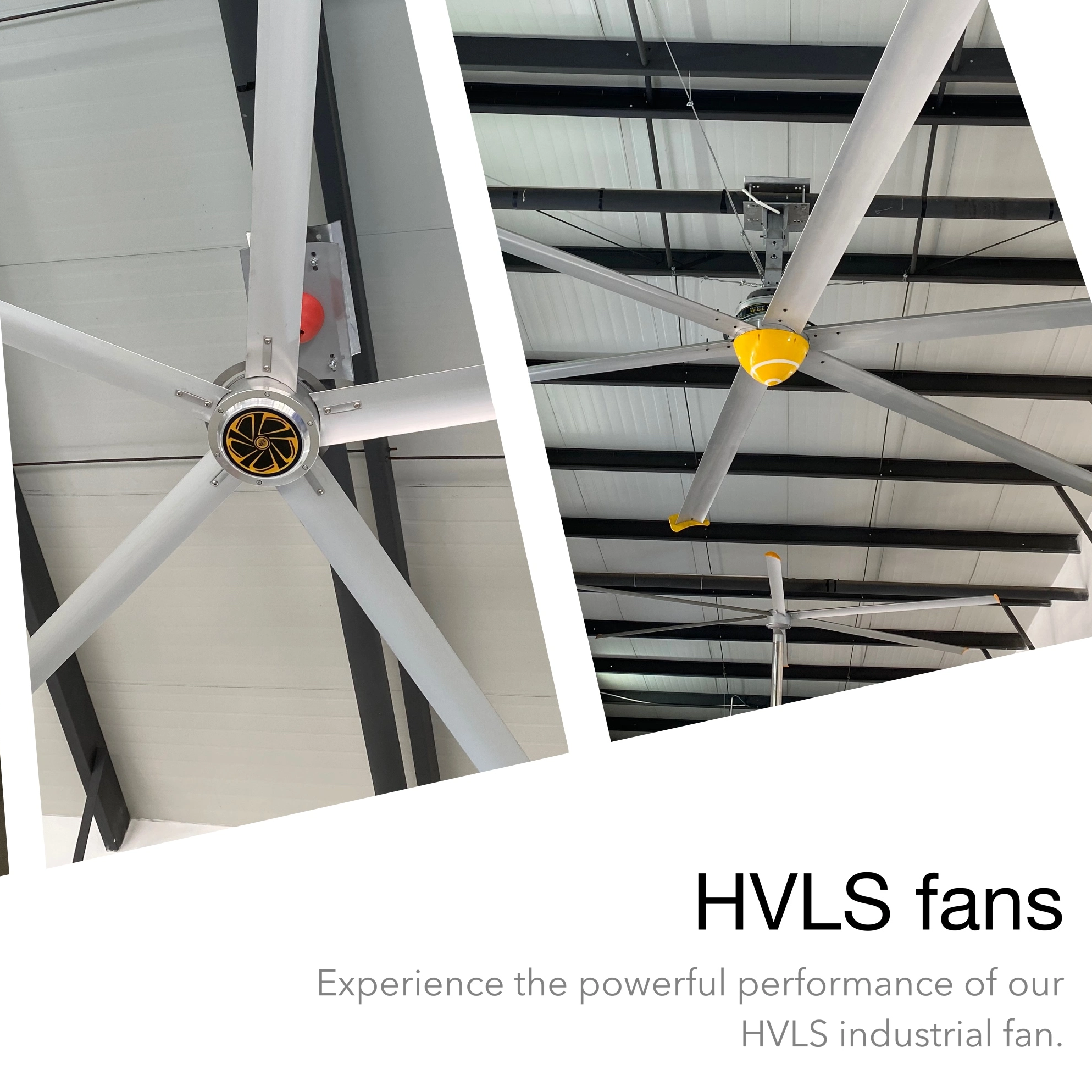 Los ventiladores HVLS , abreviatura de High-Volume Low Speed fans , están especialmente diseñados para espacios de gran escala como fábricas y almacenes. Los ventiladores cuentan con motores con engranajes de alto rendimiento y aspas grandes especialmente procesadas que proporcionan una velocidad de rotación baja y silenciosa de menos de 100 RPM para producir un gran volumen de aire. Desarrollados en 1999 por una empresa estadounidense para abordar el problema de las altas temperaturas en las granjas lecheras, los ventiladores HVLS se utilizan ahora ampliamente para refrigeración y ventilación en entornos comerciales e industriales.