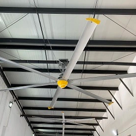 La potencia de los ventiladores de techo industriales es relativamente grande. Generalmente, un ventilador industrial grande con un diámetro de 7,3 m tiene una potencia de 1,5 KW/H y una sola unidad puede cubrir un área de 1900 m². Un gran ventilador industrial con un diámetro de 3,6 m tiene una potencia de 1,1 KW/H. La plataforma tiene una superficie de 380 m².