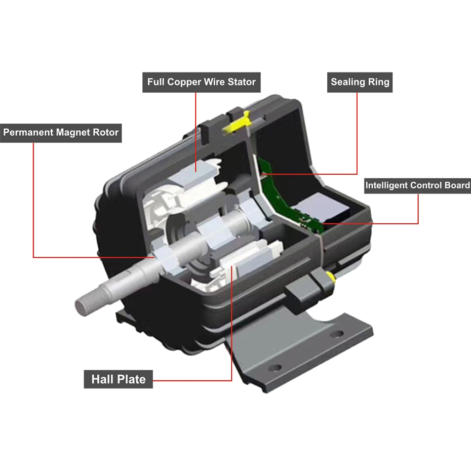 Los motores de CC tienen menos potencia que los motores de CA , especialmente los motores sin escobillas , que podrían lograr ahorros de energía de hasta un 40 % -80 % y un menor consumo de energía..