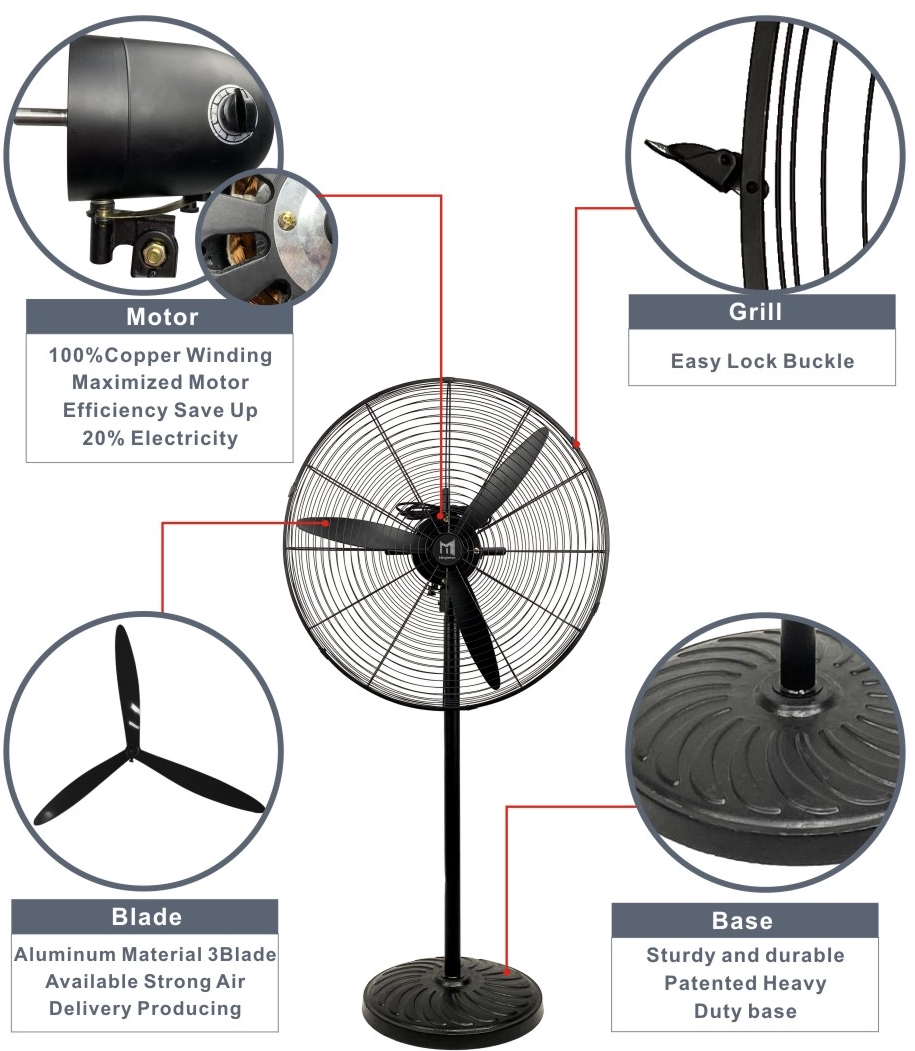 Uno de los atributos más atractivos de estos ventiladores es su capacidad para generar un volumen de aire sustancial. La combinación de un potente motor y aspas de ventilador especialmente diseñadas crea un sistema de flujo de aire sinérgico que puede hacer circular eficientemente un gran volumen de aire dentro de espacios industriales. Esta salida de alto volumen de aire contribuye significativamente a mejorar la calidad del aire, el confort térmico y el control climático general en estos entornos.